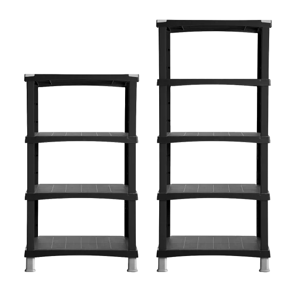 Da montare senza attrezzi, ha una struttura solida e versatile. I 4 o 5 ripiani supportano fino a 55 kg l’uno e si possono adattare a oggetti di diverse dimensioni.
