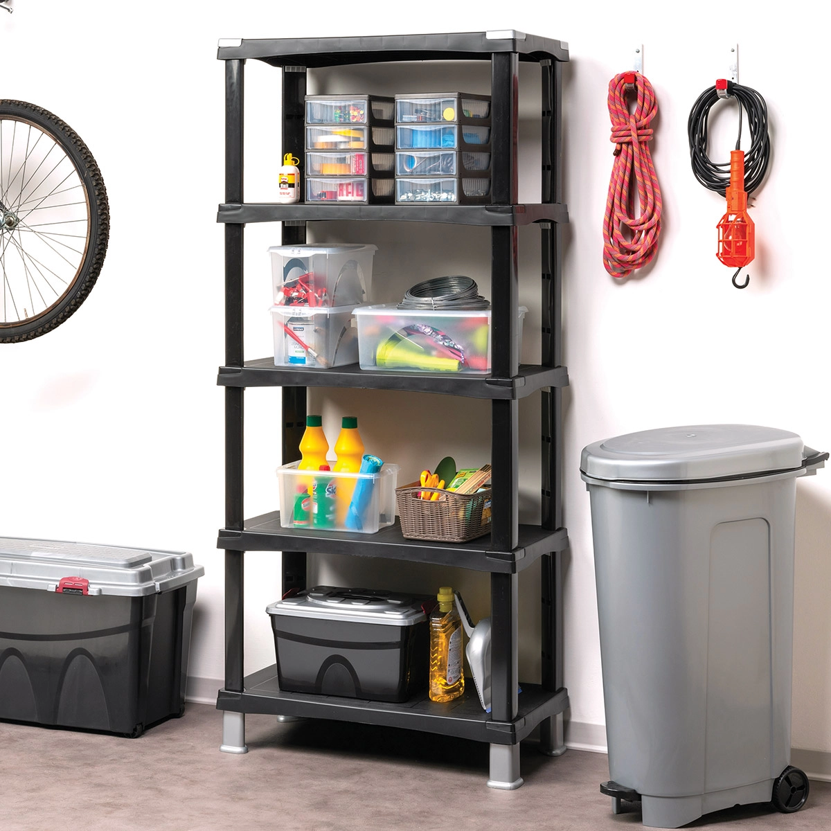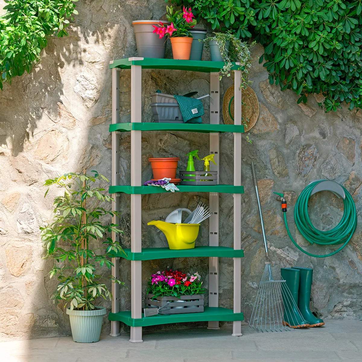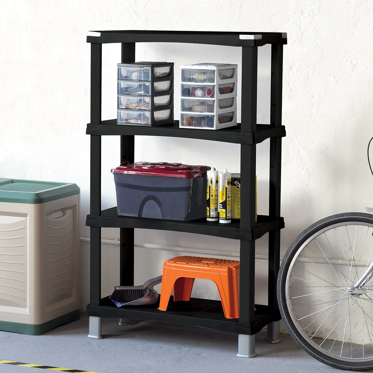 Scaffale in plastica componibile con 4 ripiani della portata di 60 kg l’uno