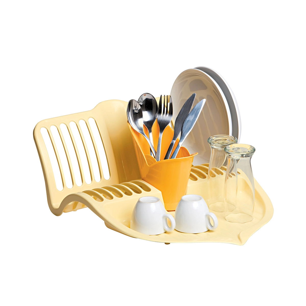 Da usare come scolapiatti da lavello o appoggiare sul piano di lavoro, funziona come un gocciolatoio che raccoglie l’acqua senza bagnare le superfici.