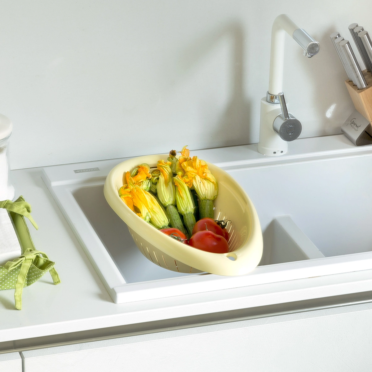Ideale per lavare e asciugare la frutta e la verdura, si trasforma anche in colapasta da appoggio. Inoltre, è utile anche per scongelare gli alimenti o far asciugare piccoli utensili da cucina.