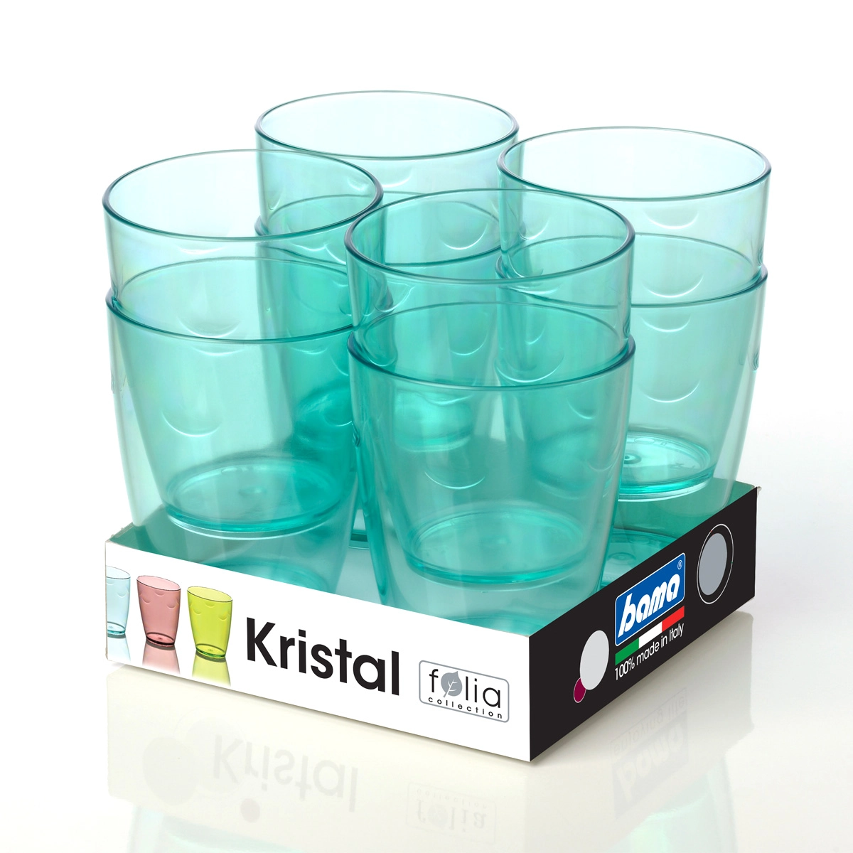 Set di 8 bicchieri realizzati in policarbonato trasparente effetto cristallo. Un materiale robusto e infrangibile, che mantiene inalterata la sua trasparenza nel tempo.