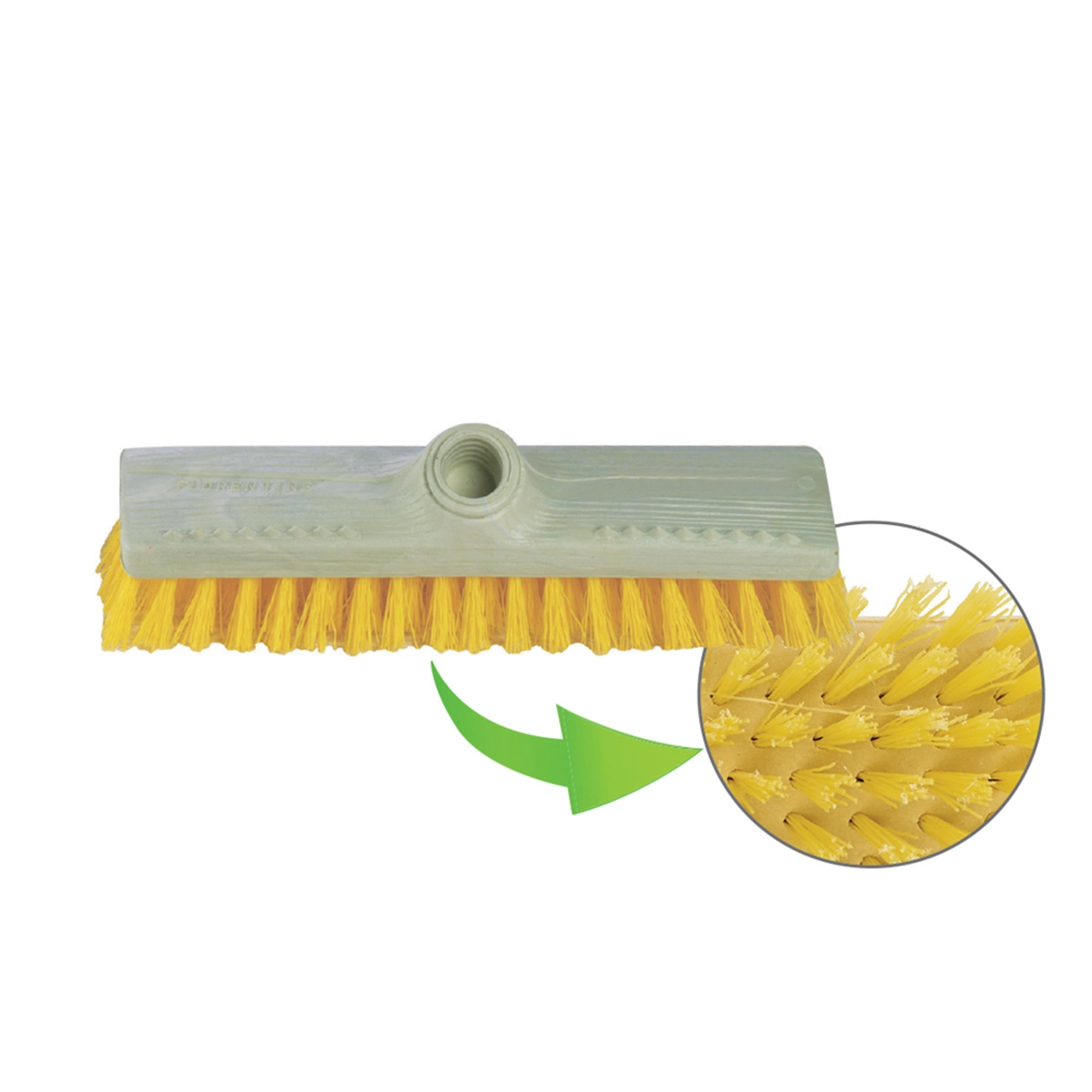 La punzonatura assicura setole stabili e lunga durata. Ideale per rimuovere lo sporco ostinato da pavimenti in ceramica, cemento, pietra o gres.