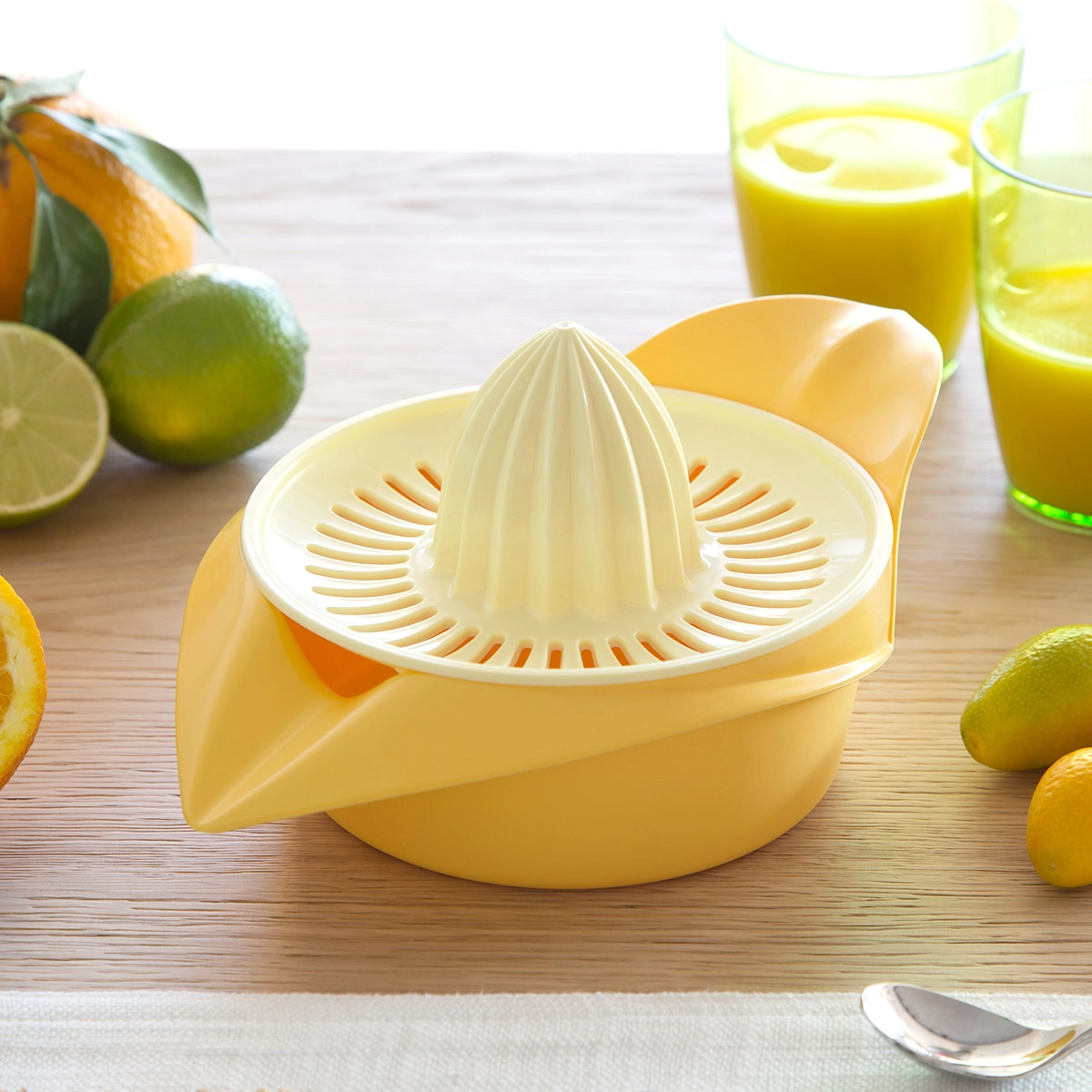 Spremiagrumi in plastica della collezione Folia per ottenere deliziosi succhi d’arancia, limone, pompelmo e lime. Basta tagliare il frutto a metà, poi premerlo e ruotarlo sul cono spremiagrumi.