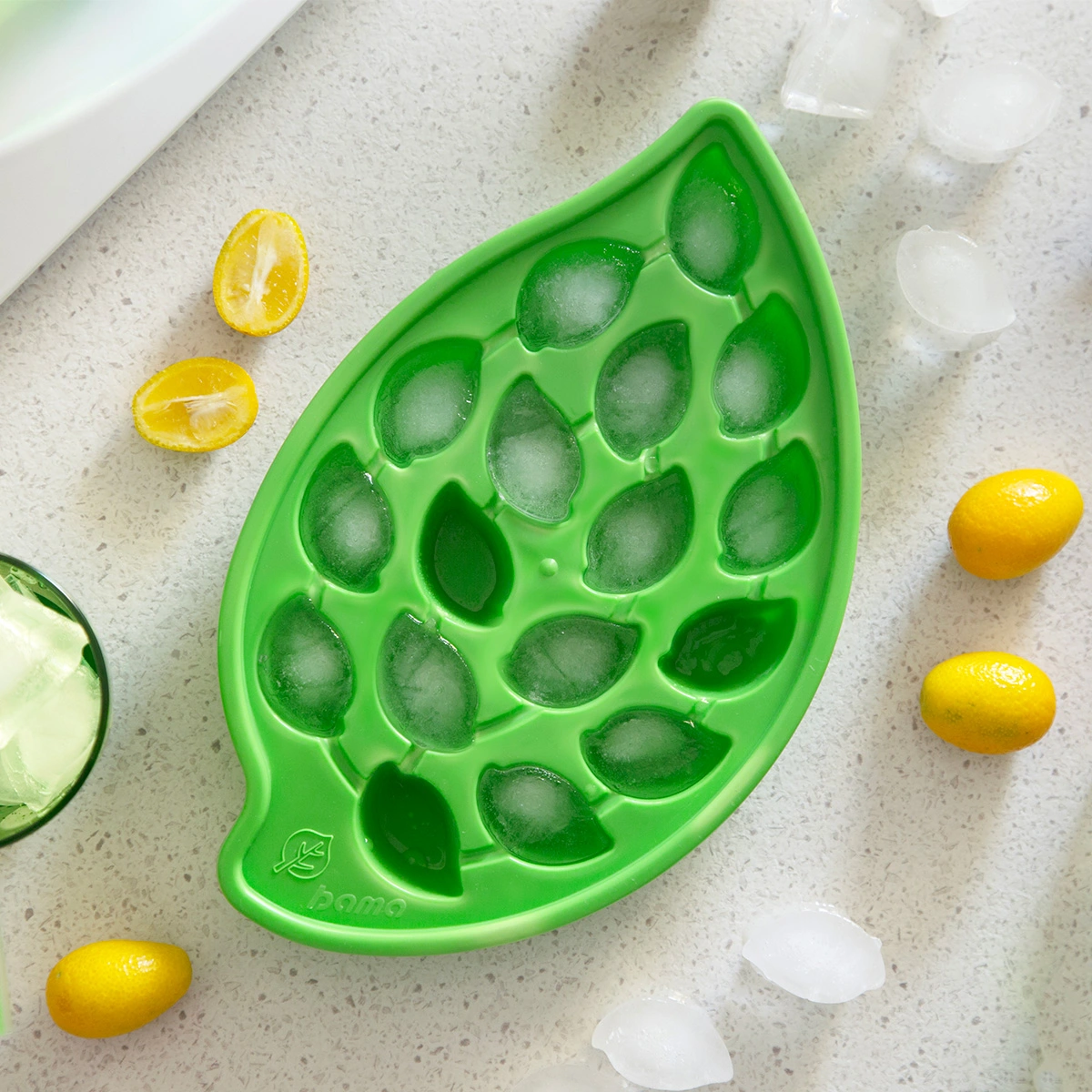 Stampo per cubetti di ghiaccio a forma di foglia realizzato in plastica durevole e adatta al contatto con gli alimenti.