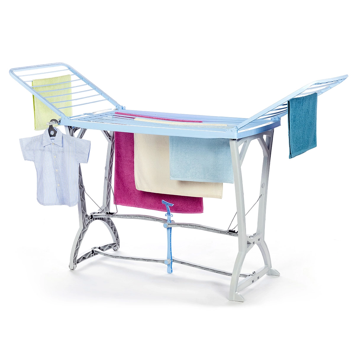 Stendibiancheria con agganci regolabili. Pronto all’uso grazie alle 10 mollette per bucato.