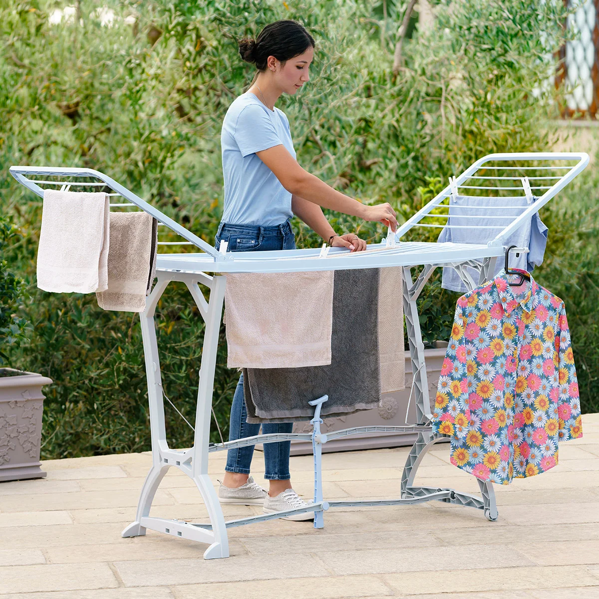 Stendino per biancheria pieghevole in resina con ruote e blocco sicuro del piedistallo: 22 metri lineari per far asciugare i panni dentro e fuori casa.