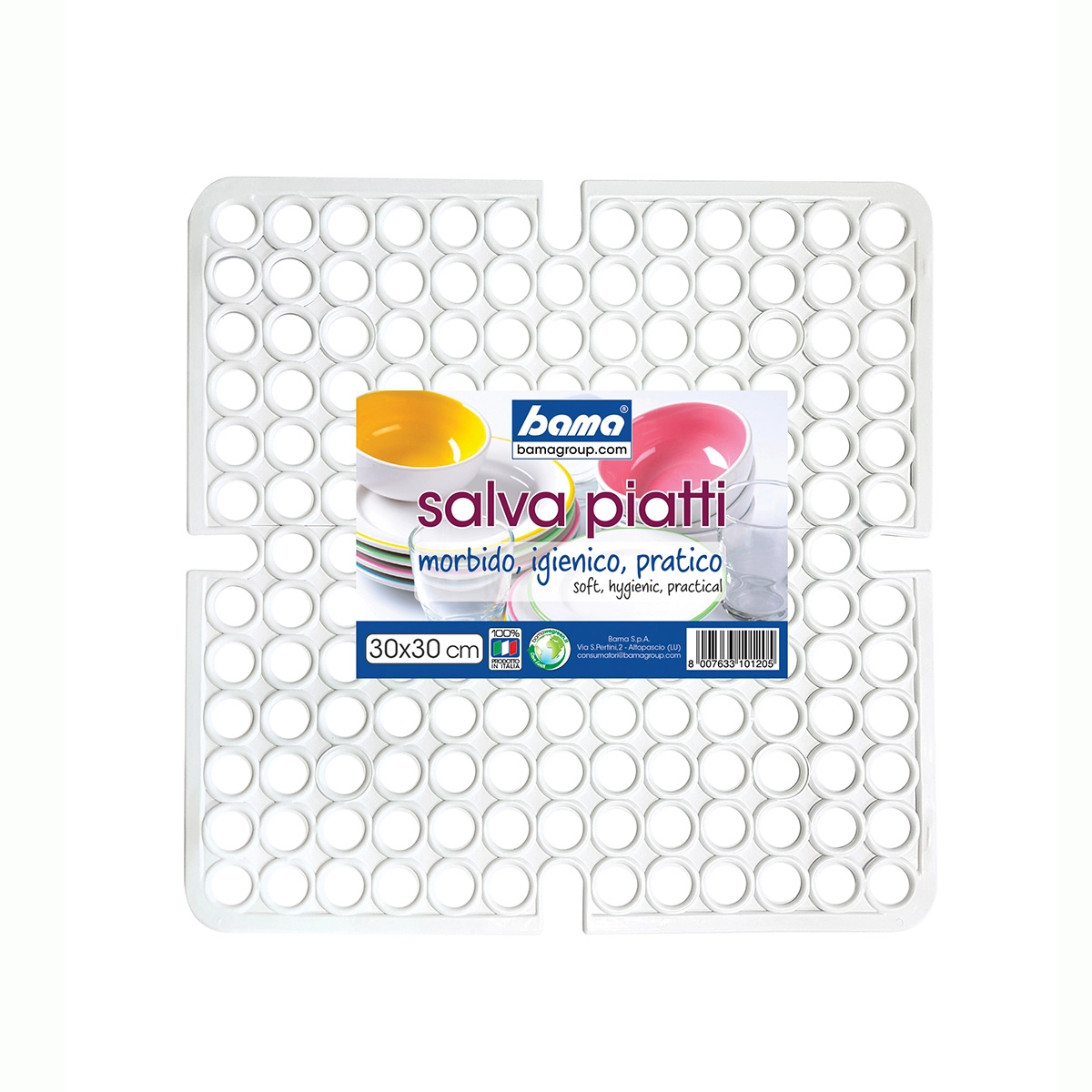 Tappetino lavandino 30 x 30 cm realizzato in gomma atossica, antisdrucciolo e antimuffa. Da usare come salvapiatti o salvabicchieri su qualsiasi lavello.